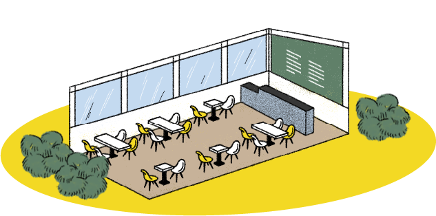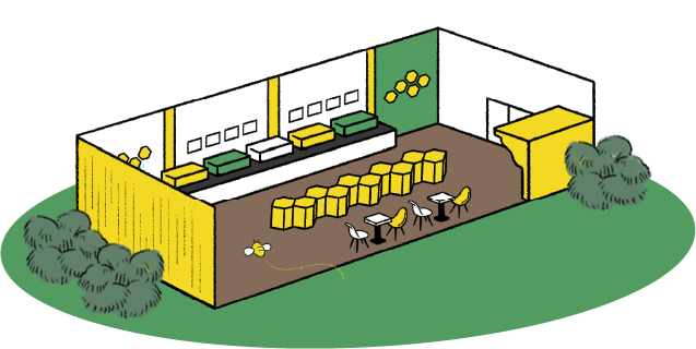 明亮、舒適的半透明室內空間,讓您一覽窗外東山美景,讓您在結束導覽行程後可以放鬆及休息。採用新穎、時髦的簡約設計風格,並適當加入蜜蜂相關元素,在品嘗蜂蜜牛奶的同時,不妨找找看有哪些蜜蜂相關的物件吧!